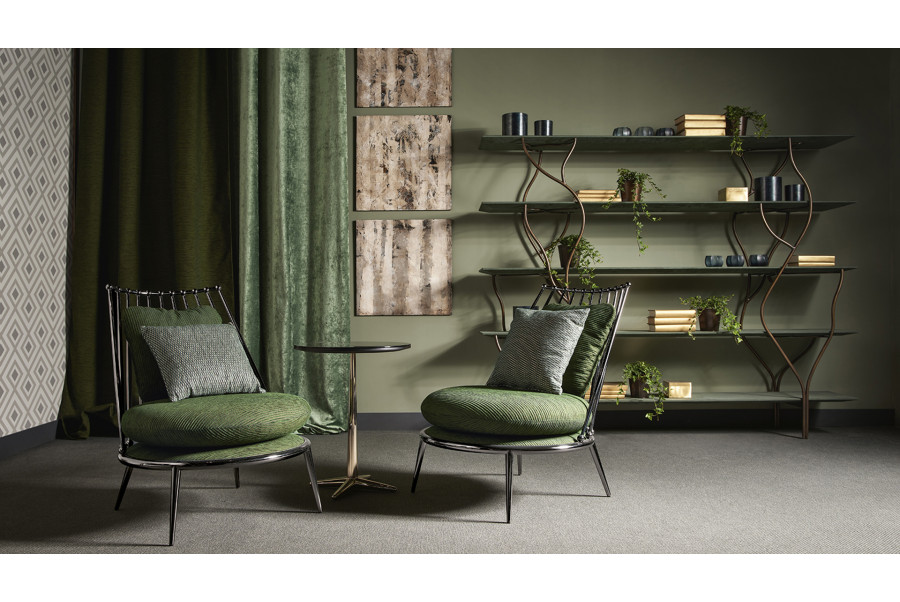 Uniquely designed, Albero has a curved and wrought iron supporting structure that harmoniously forms two branches to support the shelves. The shelves are made of wood by the method of pantograph cutting and can be varnished, decorated or covered with ekonabuk. Available in two sizes.