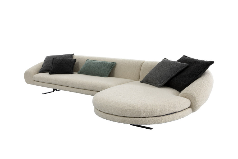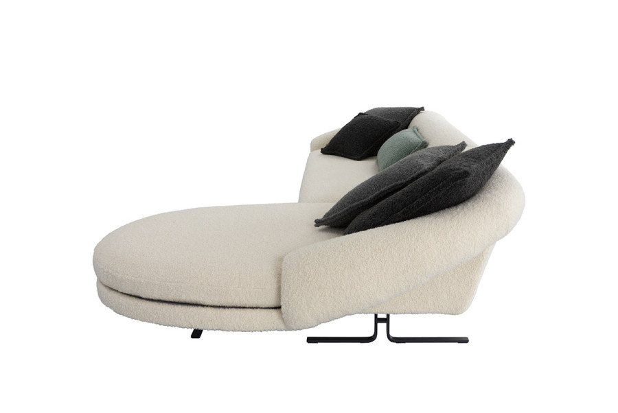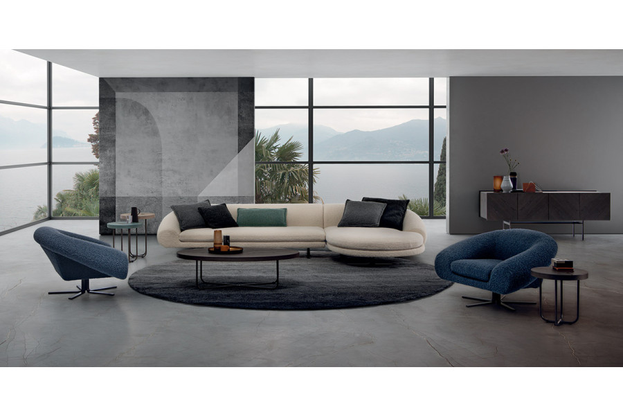 AIRSTRIKE is inspired by a symbol that takes shape like a knot on a ribbon. A well-thought-out collection: the oval-shaped armrest has become the source of the backrest. Soft, attractive lines are pleasant and comfortable in an incredibly cozy, but creative look. The grandeur of the padding is perfectly combined with the lightness of the metal base that decorates the entire project. The collection includes a sofa, a pouf, a chair, a stool and an armchair with a swivel or fixed base.