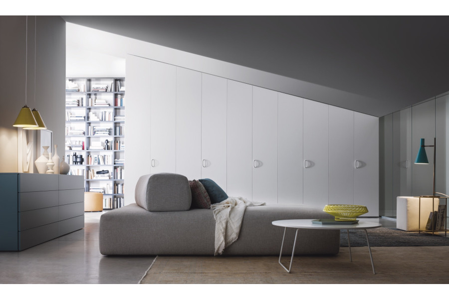 The wardrobe with the Alfa Intono swing door can be painted in the same color as your walls, so that the wardrobe becomes an integral part of the bedroom and fits perfectly even in the most uncomfortable rooms. The Alfa Intono wardrobe can be built in, placed against the wall or installed in a corner.