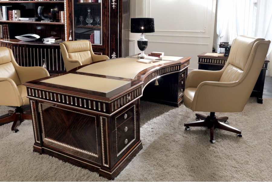 The Italian cabinet from the premium manufacturer Ceppi is finished in rosewood with antique gold. The collection includes writing desks, armchairs, libraries and credenses in various sizes. The factory can also implement your individual cabinet project.