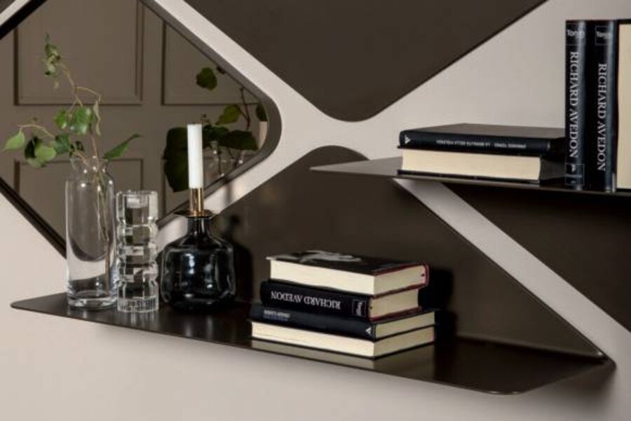 Стильная навесная полка с треугольной настенной панелью. Выполнена из металла в различных отделках. Данная модель идеально подходит для создания самых разнообразных композиций.