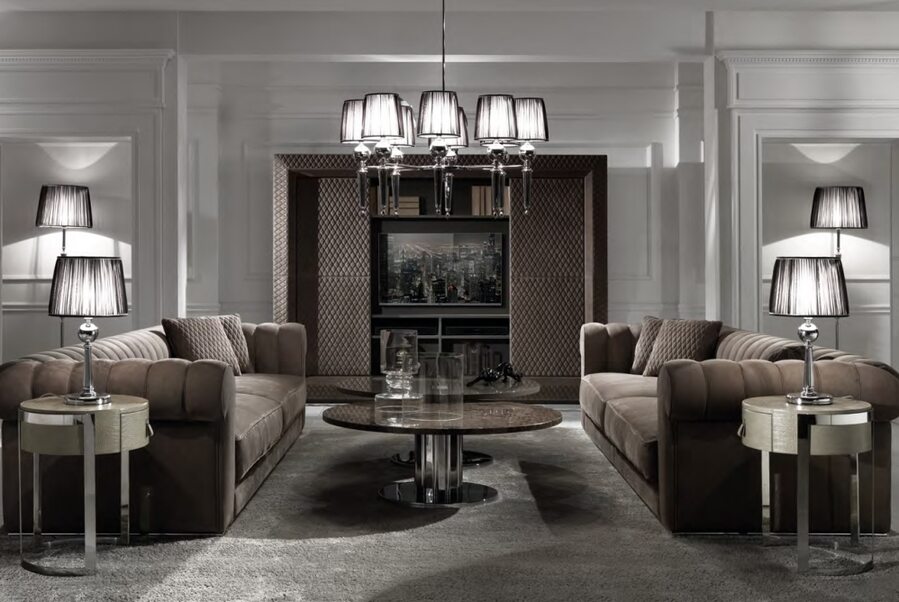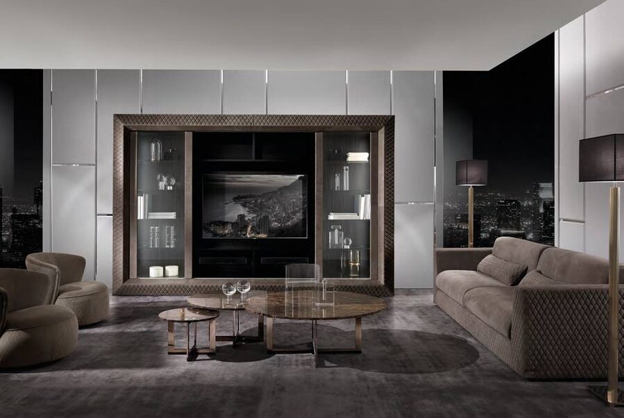 Дизайнерская рама под ТВ Byron от DV Home – это идеальное решение для интерьера гостиной в стиле ар деко или контемпорари. Корпус модели из натурального дерева с покрытием из натурального шпона. Вместительные полки и ниши по бокам скрываются за раздвижными дверцами, обтянутыми кожей или нубуком со стеганой прошивкой. Доступна в различных отделках.