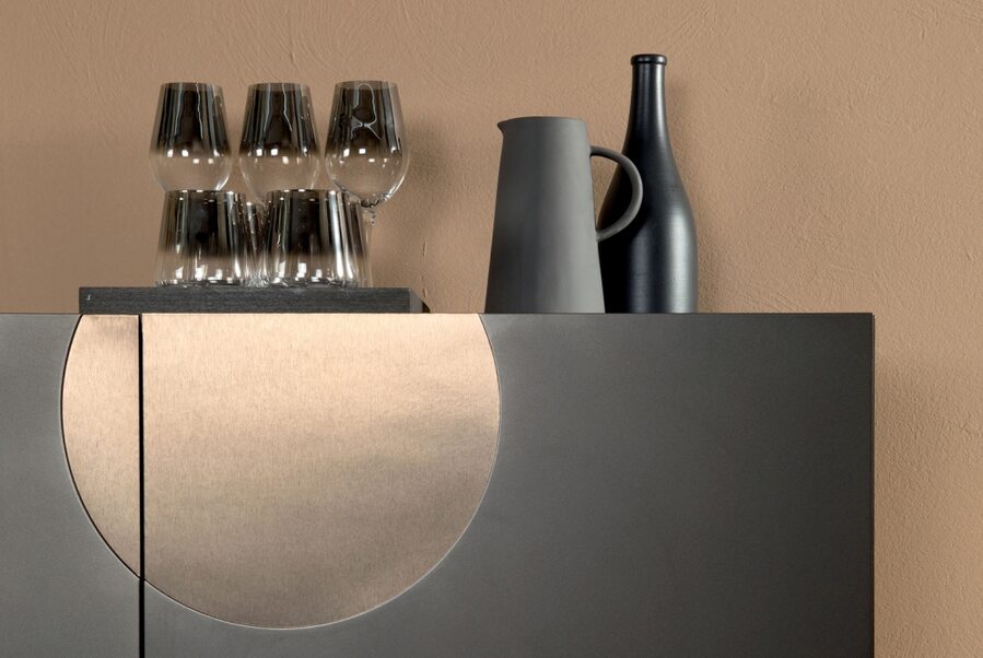 Стильная тумба под ТВ производства итальянской фабрики Tonin Casa. Основание металлическое в бронзовой отделке. Материал каркаса: лакированный МДФ с фигурным декором. Модель производится в двух размерах.
