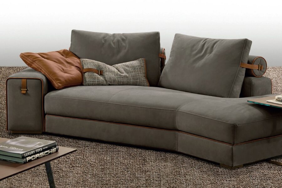Итальянский модульный диван с широкими подлокотниками и декоративными элементами. Благодаря фирменному механизму перемещения во всех спинках можно регулировать глубину сиденья. Эта модель очень комфортная, благодаря специальному усилению подушки спинки в области поясницы.