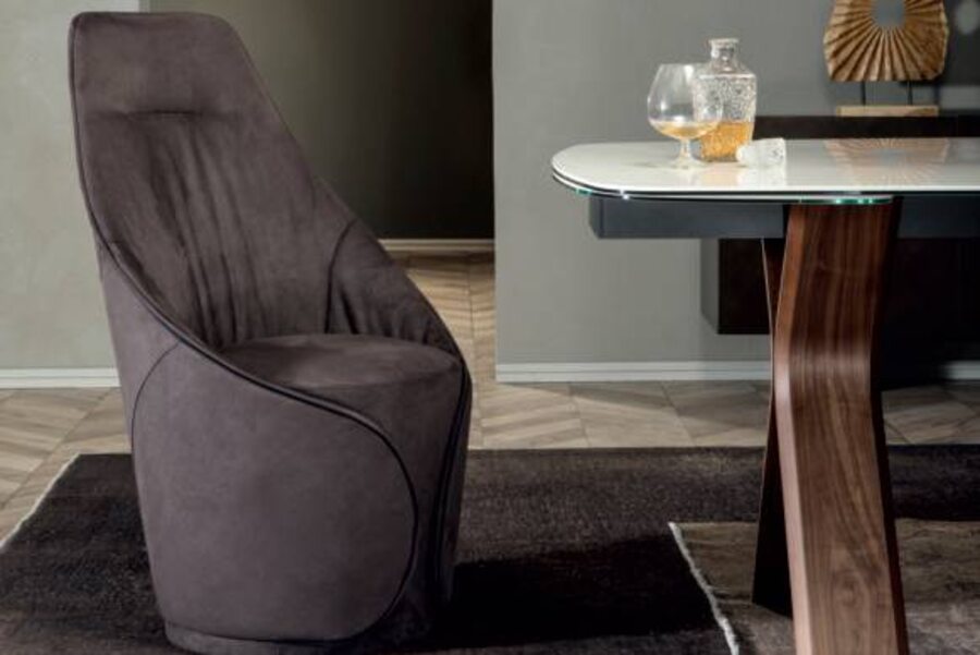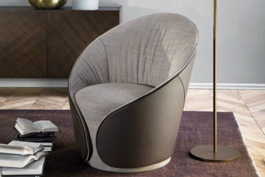 Итальянское кресло из новой коллекции фабрики Tonin Casa. Округлая спинка с внешней кожаной отделкой дополняет круглое сиденье в ткани. Ассортимент отделок впечатляет, Вы обязательно найдете идеальную обивку в нужном Вам цвете. Опционально доступен поворотный механизм. Также в коллекции представлен диванчик.