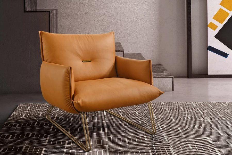 Кожаное кресло в современном стиле. Элегантное трубчатое основание, отделку которого можно выбрать на свой вкус, дополнено мягким сиденьем и спинкой с декоративным кантом. Фабрика предлагает большой выбор отделок.