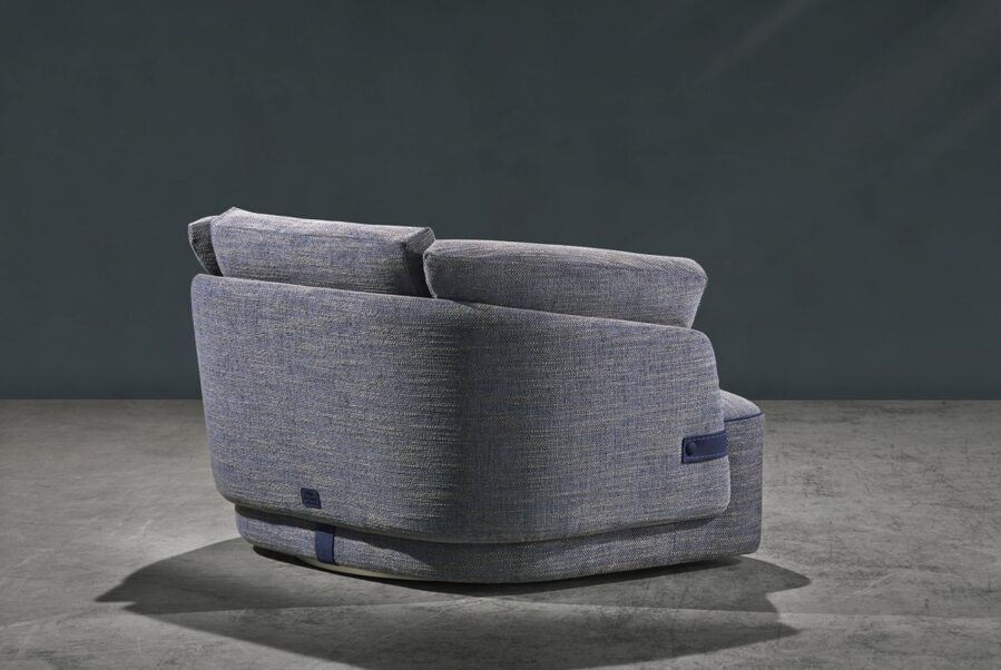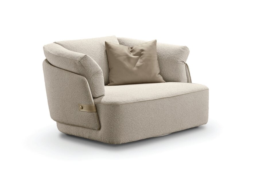 Поворотное кресло из новой коллекции очень большое и комфортное. Лаконичный силуэт украшен двумя роскошными боковыми ремешками из кожи. В обивке возможны варианты из интересных сочетаний кожи и ткани. Кресло универсальное, поэтому легко вписывается в любой интерьер.