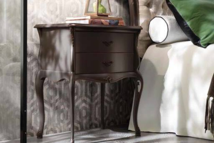 Итальянская прикроватная тумба в стиле современная классика. Данная модель оснащена двумя выдвижными ящиками. Выполнена из массива дерева в различных вариантах отделки.