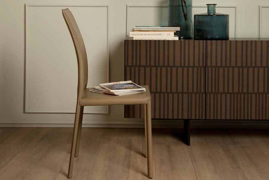 Обеденный стул Madeleine выполнен в минималистическом стиле, что делает его универсальным. Металлический каркас покрыт особой прочной кожей Cuoio. Стул Madeleine прошел тест CATAS и имеет сертификат европейского качества, который подтверждает устойчивость мебели при ежедневном использовании.