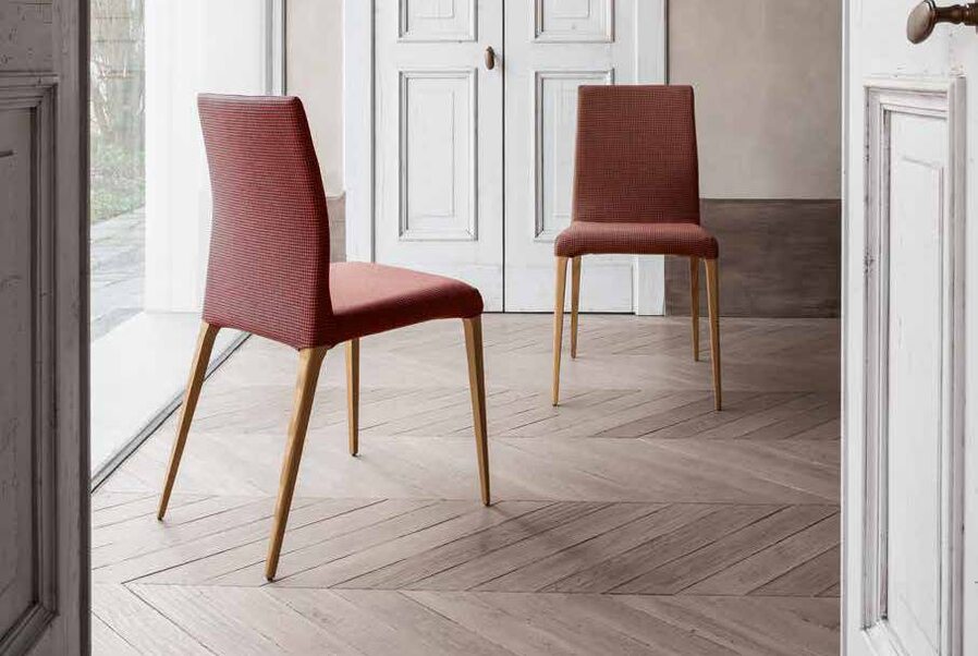 Очень стильный и компактный стул. Тонкие и изящные ножки смотрятся почти невесомо. Каркас выполнен из массива ясеня. Обивка - ткань, кожа, эко-кожа или нубук в обширной цветовой гамме.