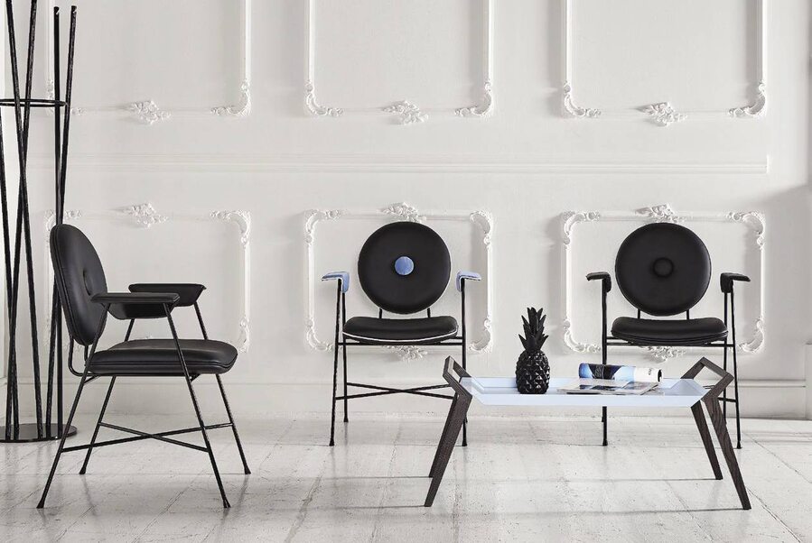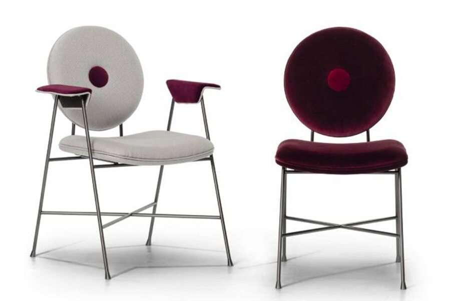Итальянский стул Penelope просто создан для ценителей оригинальных и нестандартных решений. Изящные ножки выполнены из лакированной стали. Спинка круглой формы, напоминает пуговицу. Фабрика Bontempi предлагает различные варианты обивки и их цветовые решения.